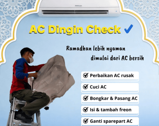 AC bersih membuat ruangan lebih sejuk dan nyaman selama bulan Ramadhan. Jangan tunggu AC tidak dingin, lakukan perawatan rutin agar tetap optimal.